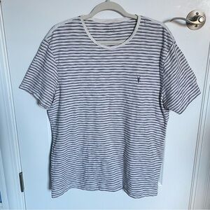 All Saints Gray White Striped Crewneck Short Sleeve T-Shirt Size XL
