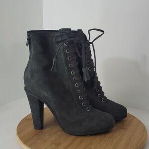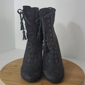All Saints Grimsby Women's Lace up Boots Grey Suede High Heel EU 40 US 9.5 NWT