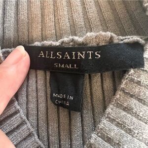 All Saints Hana Gray Ribbed V-Neck Cropped Sweater SZ S