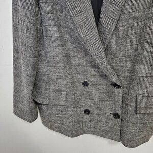 All Saints Helei Oversize Double Breasted Plaid Blazer Jacket Sz 10 Grey L