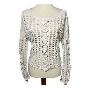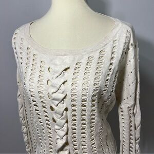 All Saints Hipster Lagenlook Open Knit Pullover Sweater Neutral Top Ecru Size 8
