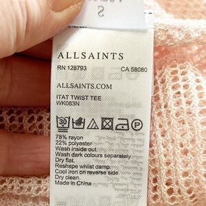 All Saints Itat Twist Tee Small Candy Pink open knit flowy sheer oversized pastel balletcore soft girl contemporary brunch artsy art to wear