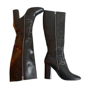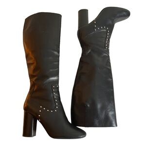All Saints Ivy Tall Black Leather Studded Heel Boot Size 39EU