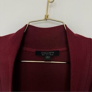 All Saints Jacket Gina Drape Open Front Long Sleeve Size XS-O Burgundy Marron