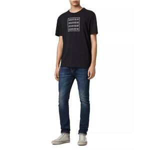 All Saints Jeans Mens 34 Blue Cigarette Skinny Button Fly Fade Distressed Denim