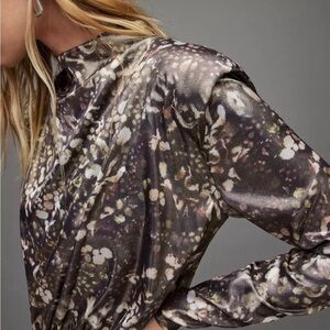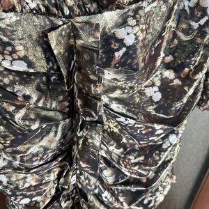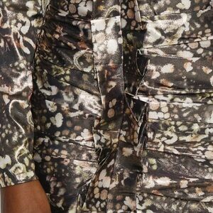 All Saints LILLIANA KETTU High neck Long Sleeve Ruched Mini Gold Black Size 4
