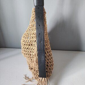"LIKE NEW" Fantastic Looking Large Cotton Crochet Sabine Hobo By All Saints. Heavy Duty Cotton ( Natural in Color) with Smooth Black Adjustable Leather Shoulder Strap, Logo Embossed Leather & Silver-tone Hardware, Clean Tan Canvas Attached Interior/ Liner with Snap Closure, Knotted/Crochet Look with Side Fringe Accents, Bag Measures approx. 11" T X 16" W, "Like New, No Wearing/Stains, Used Once:) Rt.350.00 approx. * Perfect Beach/Vacation/ Summer Pack-able Bag!