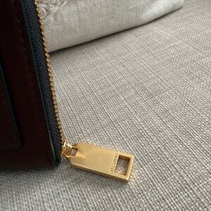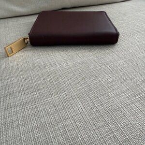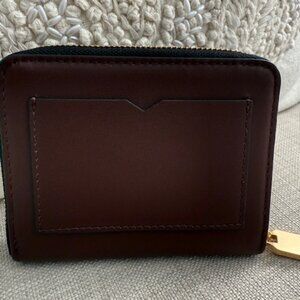 Gently used All Saints Lena Hex Leather Zip Wallet in the color Dark Red. Small scratch in front of wallet, still looks good!