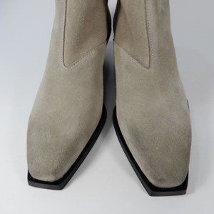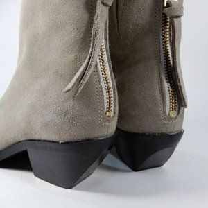 All Saints Lenora Heeled Ankle Boots Size 37 6.5 7 Stone Suede Leather NEW $349