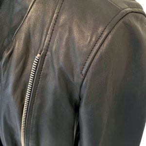 All Saints Lewin Leather Biker Jacket in Black, Size US 4 Small