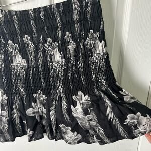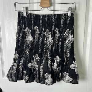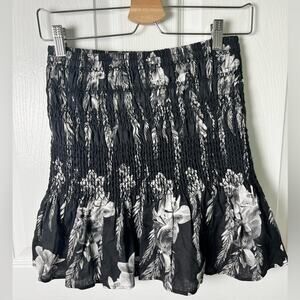 All Saints Linen Floral Black Gray Smocked Ruffle Riah Mia Pull On Mini Skirt 2