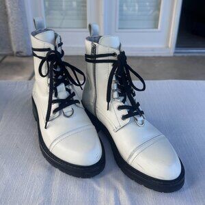 A toothy lug sole amplifies the utility aesthetic of an urban-chic hiker boot finished with gleaming D-ring hardware.