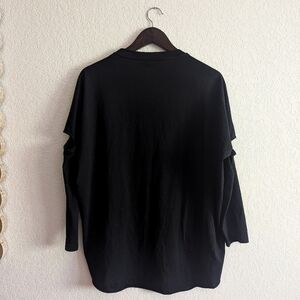 Love the muted colors and unique shape of this tee. Perfect for a moody fall/winter layering piece. Excellent condition, soft fabric. No flaws.