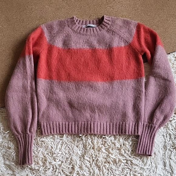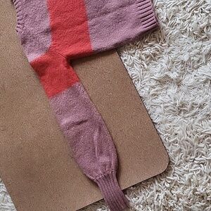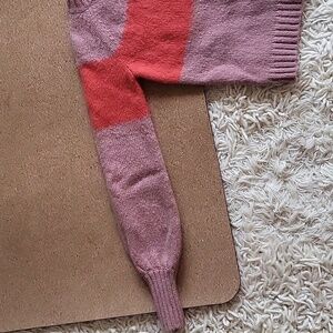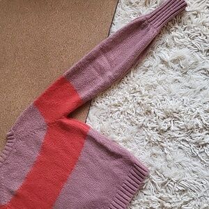 Stay cozy and stylish with this colorblock sweater in pink and red. Perfect for any casual outing. Great used condition