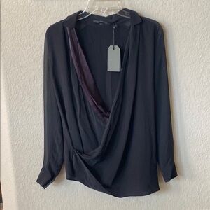 All Saints Lucas Shirt Elegant Long Sleeve Asymmetrical 100% Silk Blouse Size 4