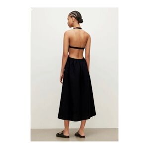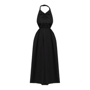 Crafted from a breathable cotton-linen blend fabric, it's got an easy feel that's shaped to a standout silhouette. It's long in length with a halter neck and elasticated detailing for a flexible fit. Cut out sides and an open back give you a chance to feel the summer sun on your skin.