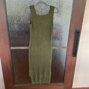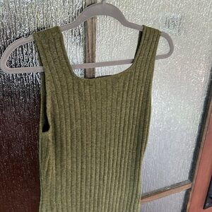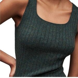 The AllSaints Women's Wool Ribbed Knit Midi Tank Sweater Dress in Green, size M, offers a stylish and comfortable option for everyday wear. This tank dress features a ribbed knit design made from wool, providing warmth and a cozy feel. The midi length adds a touch of sophistication, making it suitable for various occasions. Perfect for those looking for a versatile and chic wardrobe staple, this dress from AllSaints combines quality materials with a trendy design.