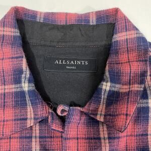 All Saints Men’s Button-Up Plaid Casual Shirt Red Long Sleeve Cotton Size Small