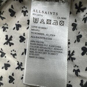 All Saints Mens White W/ Black Hearts Shorts Sleeve Button Up Shirt Size Medium.