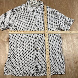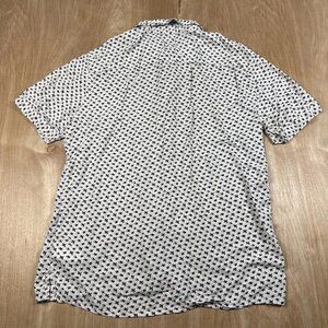 All Saints Mens White W/ Black Hearts Shorts Sleeve Button Up Shirt Size Medium