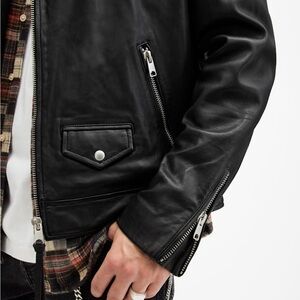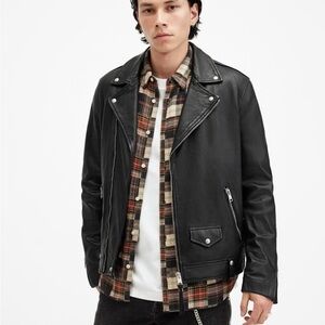 All Saints Milo Asymmetric Zip Leather Biker Jacket size Large.