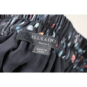 All Saints Mini Skirt Small Black Multi Printed Ruffle Sanse Freefall Skirt