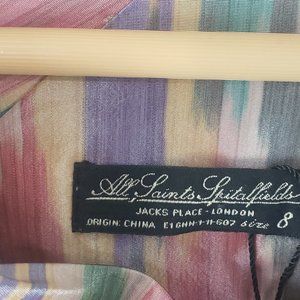 Stylish and sexy All Saints Modoc Limski Dress Size 8 In great condition. Multi colored firm satin.