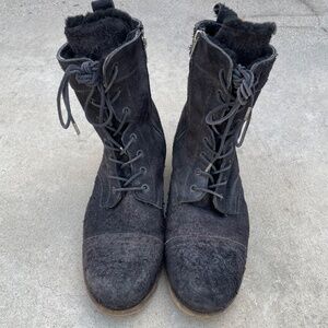 -Suede is scuffed/worn on toe caps and back of left boot (shown in photos)