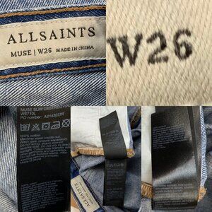 All Saints Muse Slim Destroy Jean 26 Blue Distressed Ripped Low Rise Slim Leg