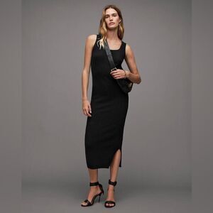 All Saints NWT Margot Sleeveless Bodycon Ribbed Midi Dress Black Sz Small