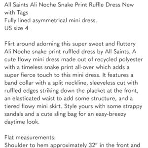 NWTs All Saints NWTs Ali Noche Snake Print Ruffled Dress