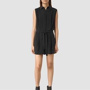 All Saints Nila Playsuit 100% Silk Black Romper Size 6