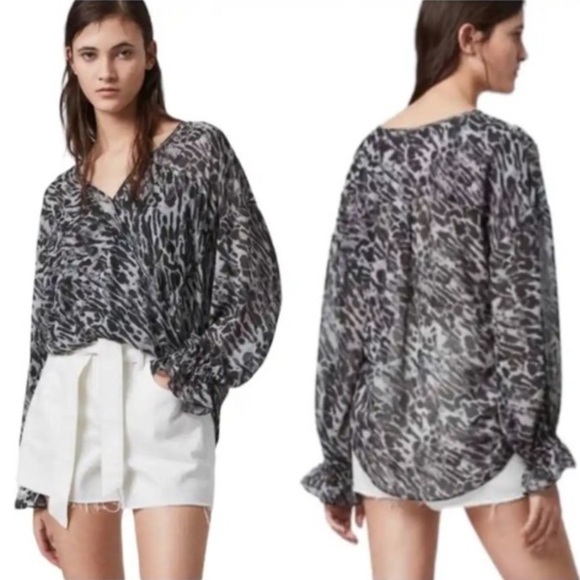 All Saints “Penny Ambient” Animal Print Chiffon Blouse Medium New Without Tags!