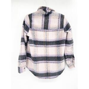 All Saints Phoebe Grey Purple Check Wool Blend Flannel Button Up Shirt Size 0
