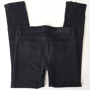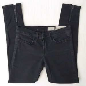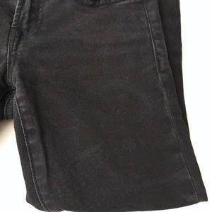 Excellent condition, gently worn. Skinny cropped fit. Black with vintage inspired Floral print. Print is very subtle. Made with European super stretch denim. Shorter inseam that twists to the back of the leg with a zip detail at the hem. Matte black metalwork. 7 1/2" rise. 26 1/2" inseam. Fit small like most AllSaints. Best for a size 25.