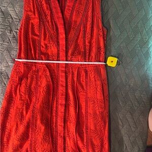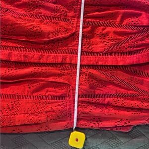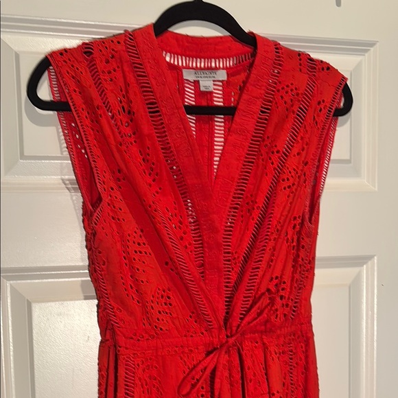 This striking red sundress by All Saints is perfect for a wedding guest or cocktail event. Featuring a sleeveless design with a flattering V-neckline, the dress showcases elegant ruched and ruffled detailing. Its maxi length adds a touch of sophistication, making it a standout piece for any special occasion. Worn once and cleaned.