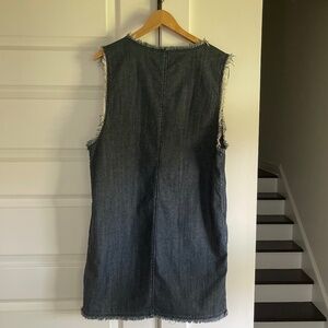All Saints Reika Denim Jumper Dress w/ Plunging Neckline + Frayed Trim ~ Size 8