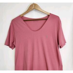 Allsaints Rose Pink Cotton V-Neck Short Sleeve T-shirt Size Medium. Excellent pre-owned condition with no rips, stains or tears