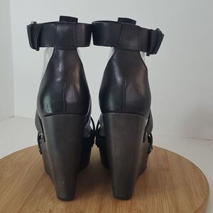 All Saints Rotchko Wedge Black Leather Strappy Sandal Size EU 40 NWT