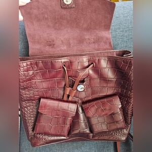 Excellent condition All Saints Rucksack backpack crocodile embossed leather in a beautiful burgandy color. See photos and product description for more details!