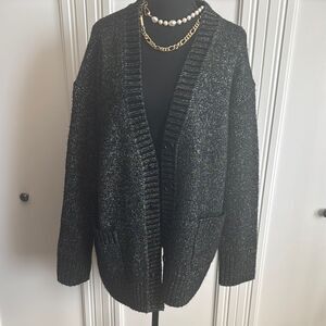 All Saints Sabrina Wool Blend Black Metallic Cardigan