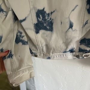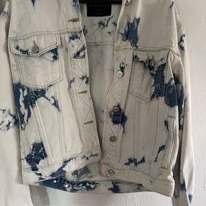 All Saints Sage Oversize Bleach Detail Cotton Denim Jacket in Punk Bleach Blue. Size Small