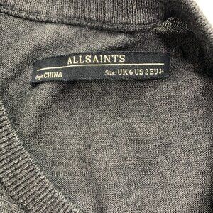All Saints Sago Sweater Dress Gray Silk Blend Asymmetrical Cut Out Shoulder Sz 2