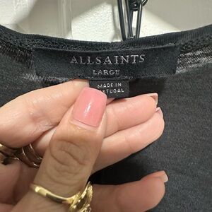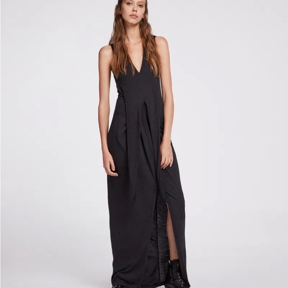 All Saints Sheer Black/Gray Elke V-Neck Slit Maxi Dress Size Large