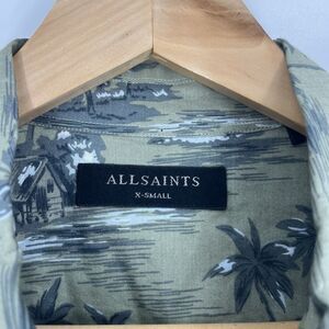 All Saints Shirt Size XS Men Green Marooned Button Up Long Sleeve Hawaiian Beach