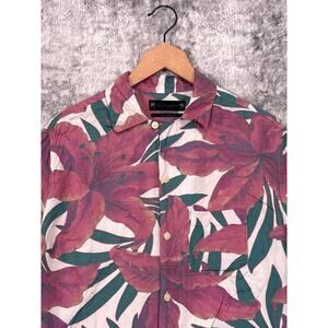 All Saints Shirt Small Mens Relaxed Fit Camp Collar Viscose Tropic Floral