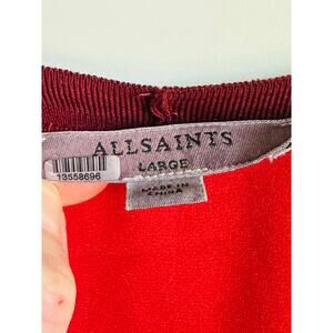 All Saints Silk Animal Print Wrap Dress Mini Burgundy ndy Modern Size 6 ruffles