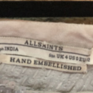I wish you could feel the weight of this dress! This is heavy!!! Hand sequined, this is a materpiece. Worn once. Unbelievable in the light.