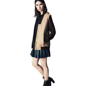 All Saints Size 8 Lucas Varsity Bomber Jacket Wool Camel Brown Snap Buttons