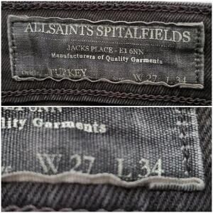 All Saints Spitalfields Jack's Place skinny gray denim jeans, size 27. Pants zip and have a button closure.